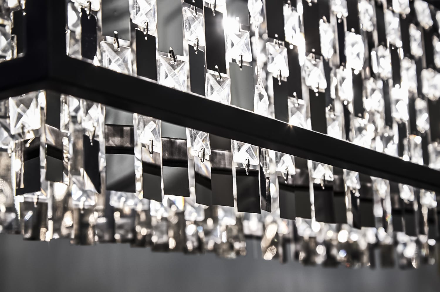 The modern Table Chandelier of the Queens Lane Kitchen is a stunning sculptural statement piece to punctuate and connect the design of this open-concept Table zone.