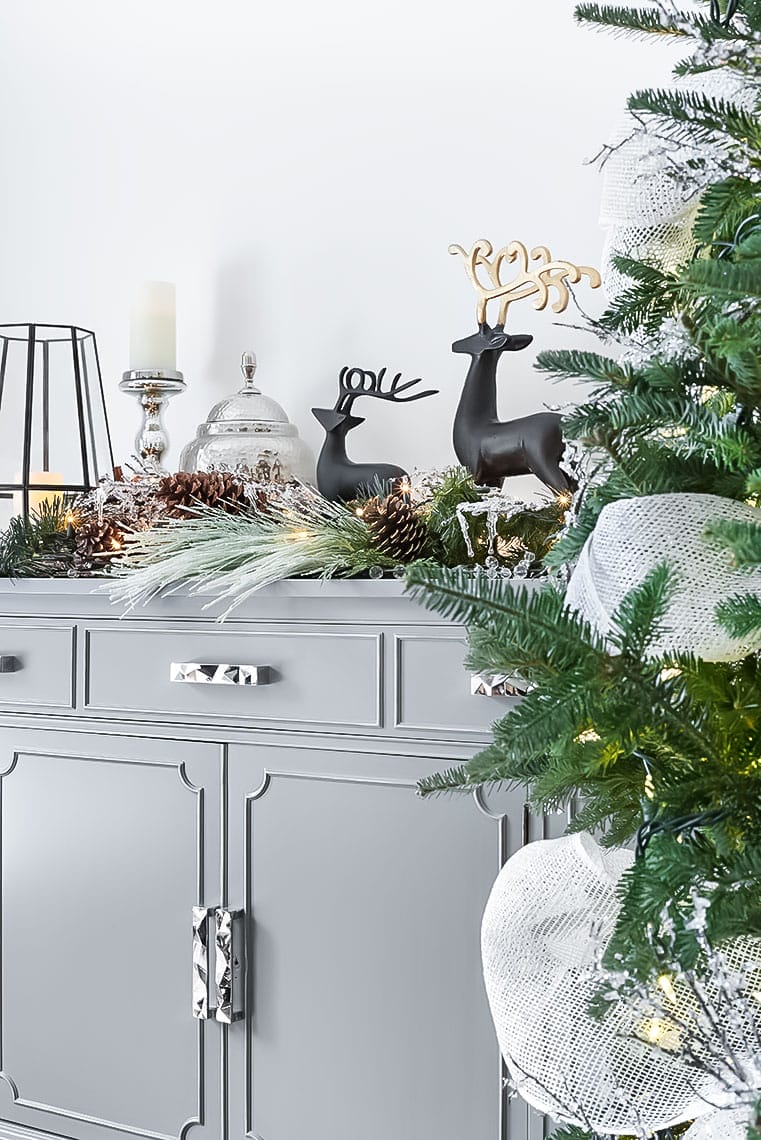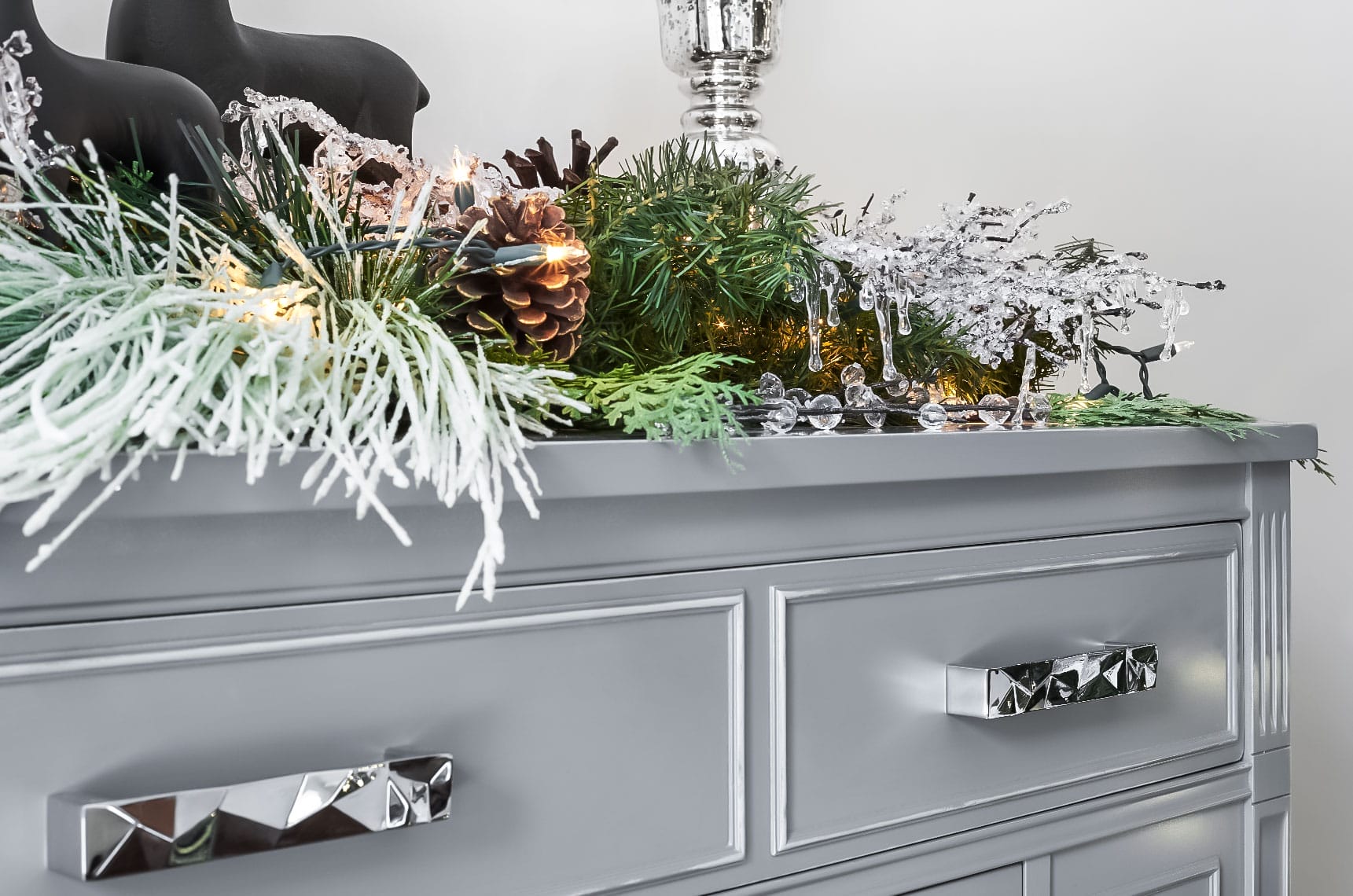 Woodington Avenue at Christmas is a classic transformation. With ample width this space allows for several seasonal and party configurations of the room. With gracious surfaces on the vintage buffet and antique highboy to decorate or create a bar this dining room is an entertainers space.